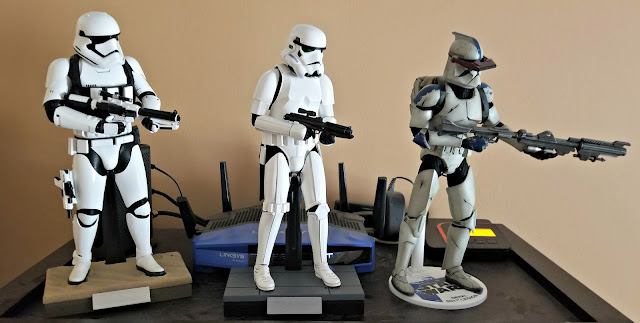 The Wi-Fi Internet router on top of a bookshelf in my home office has been guarded by a pair of Star Wars warriors, a New Order Stormtrooper and a Old Republic Clone Wars Trooper, for the last few years. Something has been missing though. A classis Star Wars Stormtrooper.